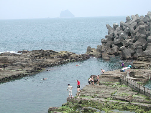 無緣欣賞日出勝景, 看人家戲水也不錯~續往袖珍型的白沙灣海水浴場: 大武崙沙灘,