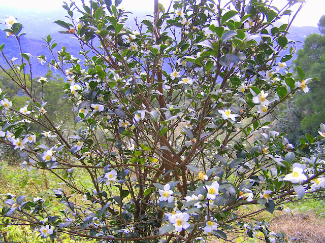 過杏花林叉路口未久,右手邊不知名植物開了密密麻麻的小白花,