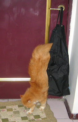 然後回客廳,督促近來幾乎放飯時才會起來活動,不然都躺平的多多,起來運動運動,